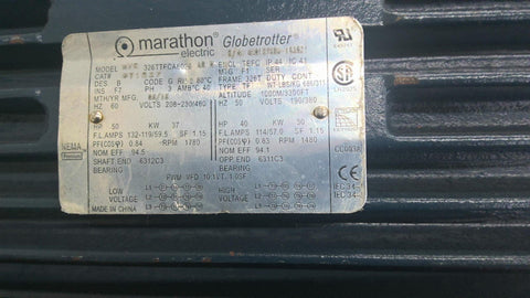 Marathon 326TTFCA6026 50HP AC Motor 1800RPM 4P 3 Phase 326T 208-230-/460V