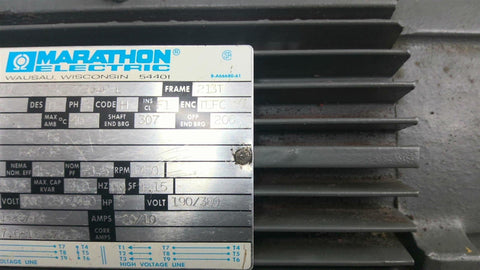 Marathon YVC213TTFL7726APL 5 HP AC Motor 1800 RPM 4P 3 PH 213T 208-230/460 V
