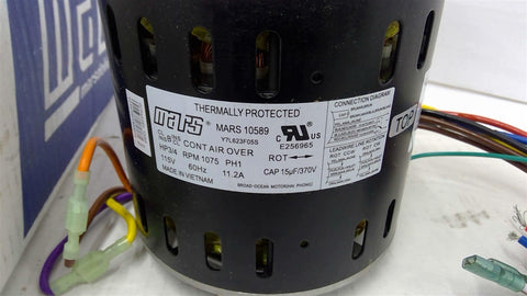 Mars 10589 3/4 HP Direct Drive Blower Motor 1075 RPM One Phase 115 V TEFC 60 HZ