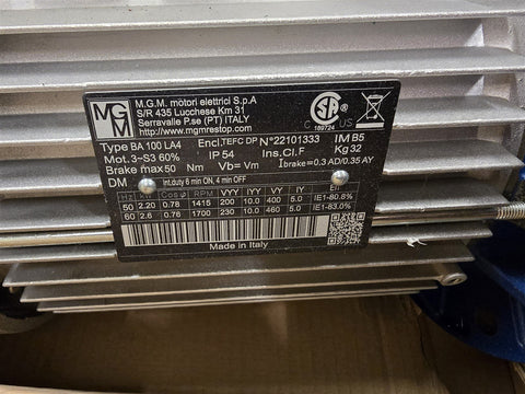 MGM BA-100-LA4 2.6kW AC Motor 1800RPM 4P 1PH 230V TEFC DP 60HZ [[Description]]BV 159132---SS283--W-6-7-5-A---151.00