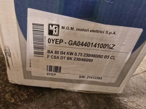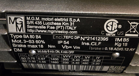 MGM BA-80-B4 .90kW AC Motor 1800RPM 4P 1PH 230V TEFC DP 60Hz [[Description]]BV 159133---SS283--W-6-7-5-A---40.00
