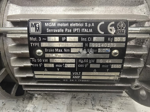 MGM BA71B4 .44kW AC Motor 1800RPM 4P 3PH 71B 277/480V 60Hz [[Description]]BV 166492---SS284-W-1-3-4-A---30.00