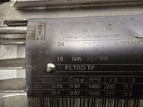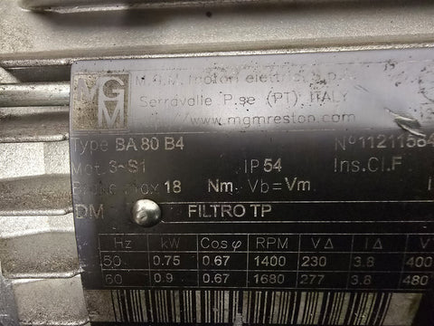 MGM BA80B4 .9kW AC Motor 1800RPM 4P 3PH 80B 230/277V 60Hz [[Description]]BV 166504---SS284-W-1-3-4-B---45.00