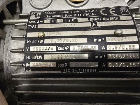 MGM BAPVD 71B2/4 AC GearMotor .44kW 3600RPM 2P 3PH 71B 480V 60Hz [[Description]]BV 165434--- SS283-W-5-6-4-A---60.00
