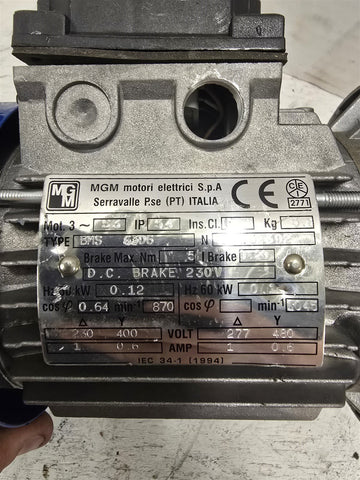 MGM BMS 63D6 .14kW AC Motor 1200RPM 6P 3PH 63D 277/480V TEFC 60Hz [[Description]]BV 165261--- SS283-W-6-7-5-A---18.00
