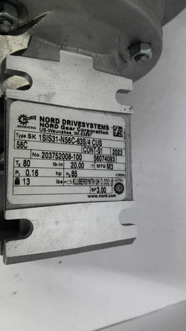 Nord SK63S/4CUS56C AC Gear Motor 20:1 Ratio .16 HP 230/460 Volts [[Description]]CC 159913---SS283 R1-5-3-2-B---20.00