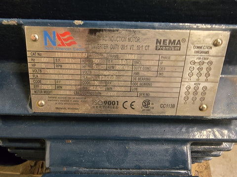 North American Electric PE184T52A1 5HP AC Motor 3600RPM 2P 3PH 184T 208-230/460V