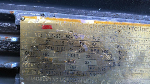 North American Electric PE449T-250-60 250 HP AC Motor 1200 RPM 6P 3 Phase 449T