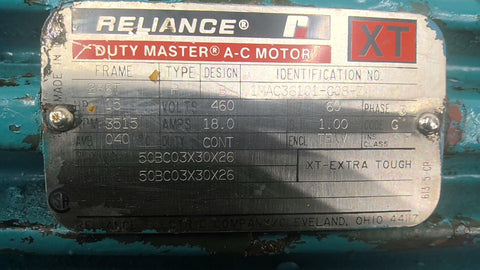 Reliance 1MAC36101-C08-Z 15 HP AC Motor 3600 RPM 2P 3 Phase 286T 460 V TENV