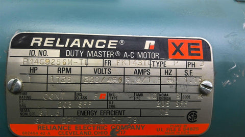 Reliance P14G9256M-TL 1HP AC Motor 1800RPM 4P 3PH 230/460V 60HZ[[Description]]CC 158193---SS283 R1-1-3-3-A---39.00