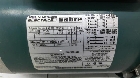 Reliance P14H1393 1hp AC Motor 1800rpm 4p 3ph 143TC 230/460v TE 60hz [[Description]]CC 160284---SS302 S2-10-1-3-C ---22.00