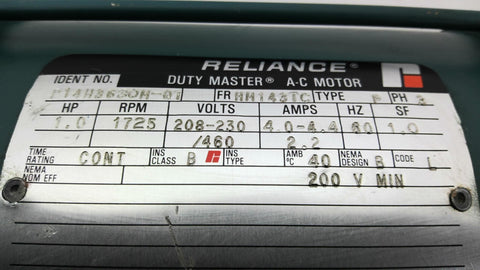 Reliance P14H3630M-0T 1HP AC Motor 1800RPM 4P 3PH 208-230/460V 60HZ [[Description]]CC 158172---SS283 R1-5-1-2-A---38.00