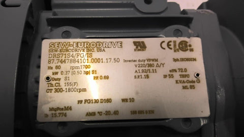 SEW Eurodrive DRS71S4/FG/IS Gearmotor 1/2 HP 220/380 Volts 23:1 Ratio[[Description]]CC 164745---SS302-R1-1-1-3-B---21.00