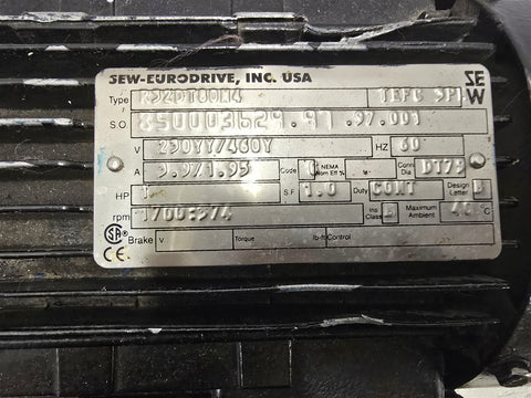 SEW Eurodrive R32DT80N4 1HP AC Motor 1800RPM 4P 3PH 80N 230/460V TEFC 60Hz