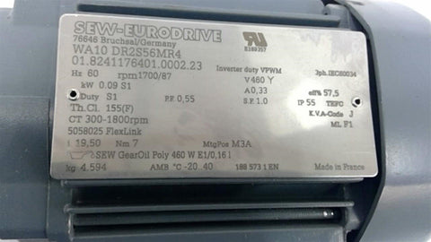 Sew-Eurodrive WA10 DR2S56MR4 Spiroplan Gear Motor 1/8 HP 460 Volt 60:1 Ratio