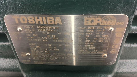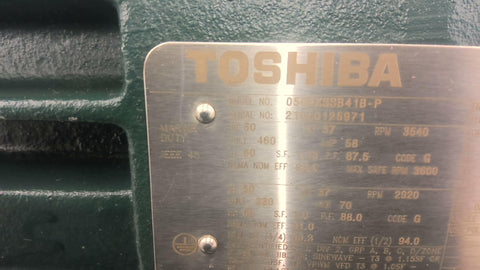 Toshiba 0502XSSB41B-P 50 HP AC Motor 3600 PRM 2P 3 Phase 326TS 460 V TEFC