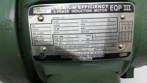 Toshiba B0024YLF2ASH 2 HP AC Motor 1800 RPM 4P 3 Phase 145T 208-230/460 V TEFC