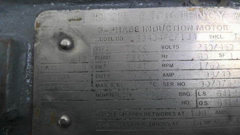 Toshiba B0404FLF1UM 40 HP AC Motor 1800 RPM 4P 3 Phase 324T 208-230/460-575 V
