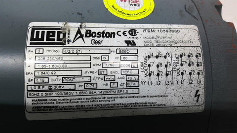 WEG TE01C040X000030073 1/2hp AC Motor 1800rpm 4p 3ph 56C 208-230/460v TEFC