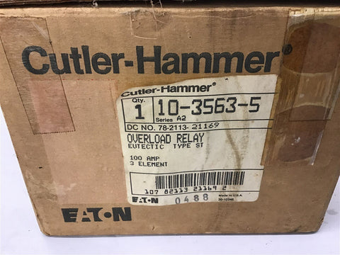 Cutler-Hammer 10-3563-5 Overload Relay 100 Amp 3 Element Return Policy Returns accepted within 30 days. Items sold as is cannot be returned, unless description is in error. Buyer pays return freight. Shipping Policy We ship almost all items with 1 business day of cleared payment. We ship USPS and UPS. We can ship on your account. If you will be shipping freight, please be sure to provide all delivery contact information including a phone number. We will need to know if you have a fork lift or dock.