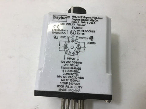 DAYTON NYZ88N TIME DELAY RELAY 120 VAC Payment Policy Payment through PayPal or Contact Brooks Motor & Electric for Credit Card approval. Return Policy Returns accepted within 30 days. Items sold as is cannot be returned, unless description is in error. Buyer pays return freight. Shipping Policy We ship almost all items within 1 business day of cleared payment in the United States. We ship USPS, UPS, and Ebay Global Shipping Program. We can ship on your account only in the Unites States. If you will be shipping freight, please be sure to provide all delivery contact information including a phone number. We will need to know if you have a fork lift or dock. International shipments do not apply to this. Shipments will be handled through Ebay Global Shipping warehouse.