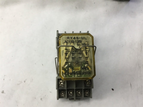 LOT OF 5 IDEC RY4S-UL RELAY AC 110-120 VOLTS WITH BASE