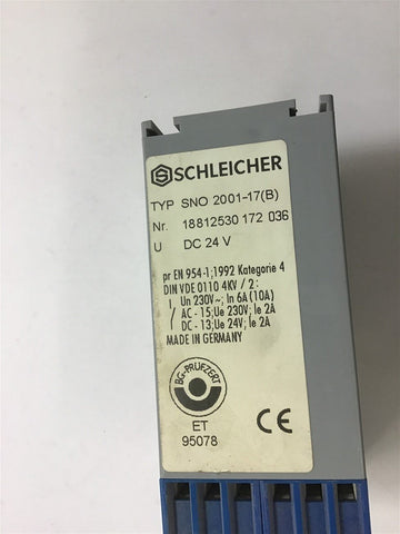 SCHLEICHER SN0 2001 -176(B) SAFETY RELAY DC 24V Return Policy Returns accepted within 30 days. Items sold as is cannot be returned, unless description is in error. Buyer pays return freight. Shipping Policy We ship almost all items with 1 business day of cleared payment. We ship USPS and UPS. We can ship on your account. If you will be shipping freight, please be sure to provide all delivery contact information including a phone number. We will need to know if you have a fork lift or dock.