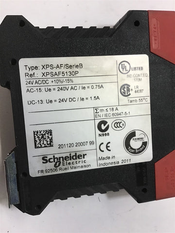 SCHNEIDER XPS-AF 24 V AC/DC XPSAF5130P SAFETY RELAY Return Policy Returns accepted within 30 days. Items sold as is cannot be returned, unless description is in error. Buyer pays return freight. Shipping Policy We ship almost all items with 1 business day of cleared payment. We ship USPS and UPS. We can ship on your account. If you will be shipping freight, please be sure to provide all delivery contact information including a phone number. We will need to know if you have a fork lift or dock.