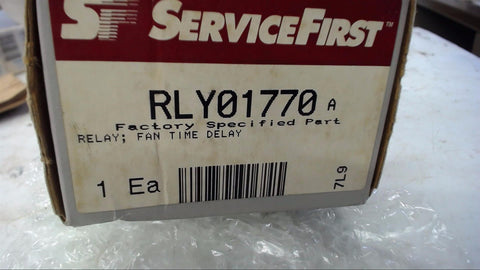 SERVICE FIRST RLY01770 FAN TIME DELAY RELAY Return Policy Returns accepted within 30 days. Items sold as is cannot be returned, unless description is in error. Buyer pays return freight. Shipping Policy We ship almost all items with 1 business day of cleared payment. We ship USPS and UPS. We can ship on your account. If you will be shipping freight, please be sure to provide all delivery contact information including a phone number. We will need to know if you have a fork lift or dock.