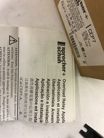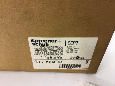 Sprecher+Schuh CEP7-M180-10 Overload Relay 57-100A Return Policy Returns accepted within 30 days. Items sold as is cannot be returned, unless description is in error. Buyer pays return freight. Shipping Policy We ship almost all items with 1 business day of cleared payment. We ship USPS and UPS. We can ship on your account. If you will be shipping freight, please be sure to provide all delivery contact information including a phone number. We will need to know if you have a fork lift or dock.