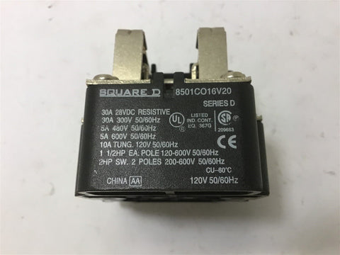SQUARE D 8501CO16V20 GENERAL PURPOSE POWER RELAY SER D 120V 50/60HZ Return Policy Returns accepted within 30 days. Items sold as is cannot be returned, unless description is in error. Buyer pays return freight. Shipping Policy We ship almost all items with 1 business day of cleared payment. We ship USPS and UPS. We can ship on your account. If you will be shipping freight, please be sure to provide all delivery contact information including a phone number. We will need to know if you have a fork lift or dock.