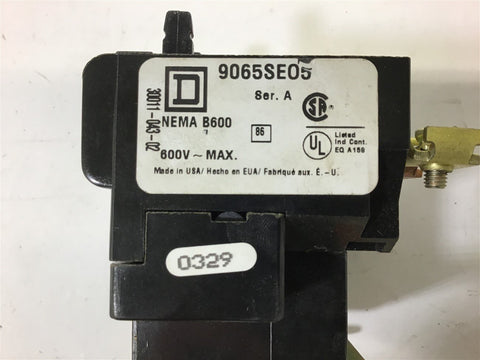 SQUARE D 9065SE05 OVERLOAD RELAY 600V Return Policy Returns accepted within 30 days. Items sold as is cannot be returned, unless description is in error. Buyer pays return freight. Shipping Policy We ship almost all items with 1 business day of cleared payment. We ship USPS and UPS. We can ship on your account. If you will be shipping freight, please be sure to provide all delivery contact information including a phone number. We will need to know if you have a fork lift or dock.