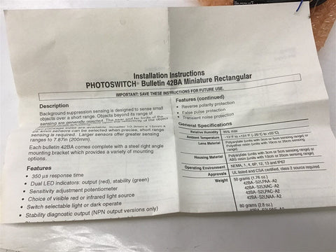 Allen Bradley 42BA-S2LPAA-A2 Photo Switch 12-247 Vdc