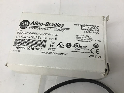 Allen-Bradley 42JT-P2LAT1-F4 Photo Switch 6M Return Policy Returns accepted within 30 days. Items sold as is cannot be returned, unless description is in error. Buyer pays return freight. Shipping Policy We ship almost all items with 1 business day of cleared payment. We ship USPS and UPS. We can ship on your account. If you will be shipping freight, please be sure to provide all delivery contact information including a phone number. We will need to know if you have a fork lift or dock.