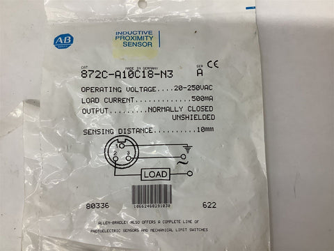 Allen Bradley 872C-A10C18-N3 Sensor 20-250 Vac 10mm