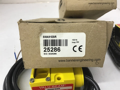 Banner Engineering SMA91ESR Valu-Beam Sensor Lot Of 2 Return Policy Returns accepted within 30 days. Items sold as is cannot be returned, unless description is in error. Buyer pays return freight. Shipping Policy We ship almost all items with 1 business day of cleared payment. We ship USPS and UPS. We can ship on your account. If you will be shipping freight, please be sure to provide all delivery contact information including a phone number. We will need to know if you have a fork lift or dock.