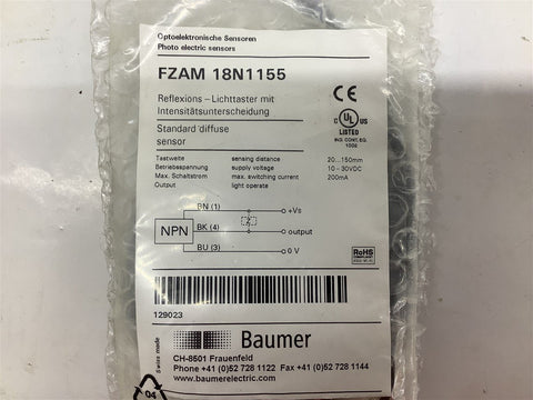 Baumer FZAM 18N1155 Sensor 10-30 VDC Return Policy Returns accepted within 30 days. Items sold as is cannot be returned, unless description is in error. Buyer pays return freight. Shipping Policy We ship almost all items with 1 business day of cleared payment. We ship USPS and UPS. We can ship on your account. If you will be shipping freight, please be sure to provide all delivery contact information including a phone number. We will need to know if you have a fork lift or dock.