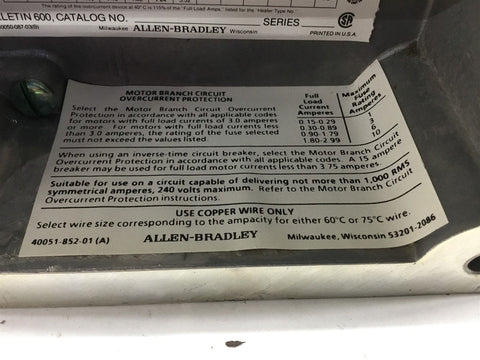 Allen Bradley 600-TCX5 Series D 1HP 115-230VAC 1PH 1&2 Pole