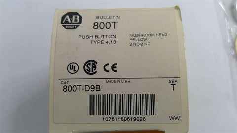 Allen Bradley 800T-D9B Yellow Mushroom Head Push Button