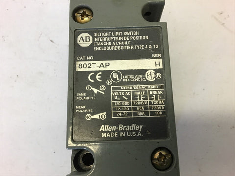 Allen-Bradley 802T-AP Oiltight Limit Switch 60 Amp 120 volts Return Policy Returns accepted within 30 days. Items sold as is cannot be returned, unless description is in error. Buyer pays return freight. Shipping Policy We ship almost all items with 1 business day of cleared payment. We ship USPS and UPS. We can ship on your account. If you will be shipping freight, please be sure to provide all delivery contact information including a phone number. We will need to know if you have a fork lift or dock.