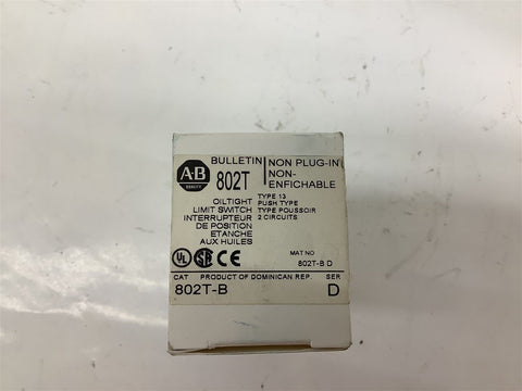 Allen-Bradley 802T-B Oiltight Limit Switch Return Policy Returns accepted within 30 days. Items sold as is cannot be returned, unless description is in error. Buyer pays return freight. Shipping Policy We ship almost all items with 1 business day of cleared payment. We ship USPS and UPS. We can ship on your account. If you will be shipping freight, please be sure to provide all delivery contact information including a phone number. We will need to know if you have a fork lift or dock.