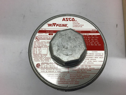 Asco Tri-Point SA12D Temperature Switch 1/4 Amp HP 250 Vac Return Policy Returns accepted within 30 days. Items sold as is cannot be returned, unless description is in error. Buyer pays return freight. Shipping Policy We ship almost all items with 1 business day of cleared payment. We ship USPS and UPS. We can ship on your account. If you will be shipping freight, please be sure to provide all delivery contact information including a phone number. We will need to know if you have a fork lift or dock.