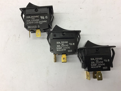 Carling 10 Amp Rocker Switch 250 VAc Lot Of 3 Return Policy Returns accepted within 30 days. Items sold as is cannot be returned, unless description is in error. Buyer pays return freight. Shipping Policy We ship almost all items with 1 business day of cleared payment. We ship USPS and UPS. We can ship on your account. If you will be shipping freight, please be sure to provide all delivery contact information including a phone number. We will need to know if you have a fork lift or dock.