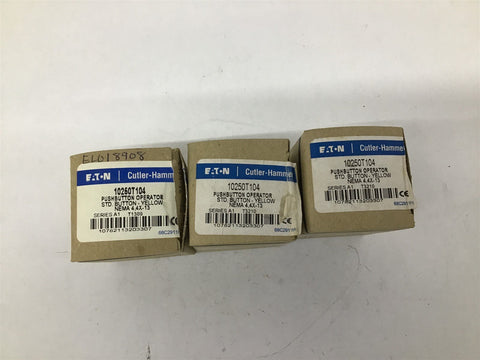 Cutler Hammer 10250T104 Push Button Operator STD Yellow Lot Of 3 Return Policy Returns accepted within 30 days. Items sold as is cannot be returned, unless description is in error. Buyer pays return freight. Shipping Policy We ship almost all items with 1 business day of cleared payment. We ship USPS and UPS. We can ship on your account. If you will be shipping freight, please be sure to provide all delivery contact information including a phone number. We will need to know if you have a fork lift or dock.