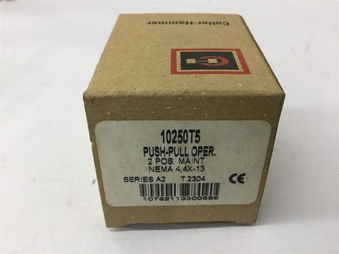 Cutler-Hammer 10250T5 Push-Pull Operator 2 Position Maintained Return Policy Returns accepted within 30 days. Items sold as is cannot be returned, unless description is in error. Buyer pays return freight. Shipping Policy We ship almost all items with 1 business day of cleared payment. We ship USPS and UPS. We can ship on your account. If you will be shipping freight, please be sure to provide all delivery contact information including a phone number. We will need to know if you have a fork lift or dock.