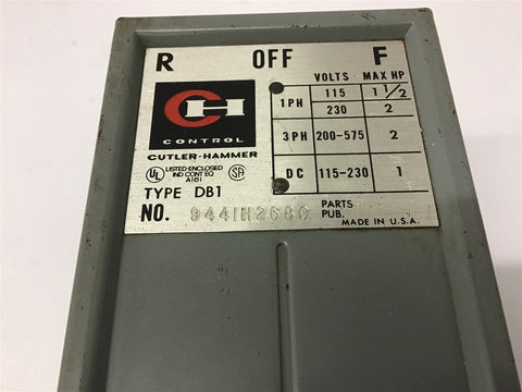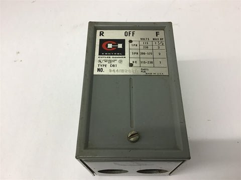 Cutler-Hammer DB1 Drum Switch Return Policy Returns accepted within 30 days. Items sold as is cannot be returned, unless description is in error. Buyer pays return freight. Shipping Policy We ship almost all items with 1 business day of cleared payment. We ship USPS and UPS. We can ship on your account. If you will be shipping freight, please be sure to provide all delivery contact information including a phone number. We will need to know if you have a fork lift or dock.