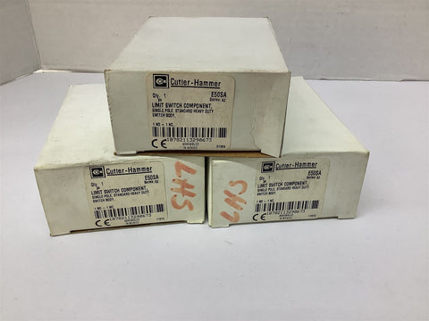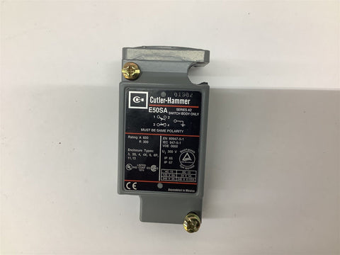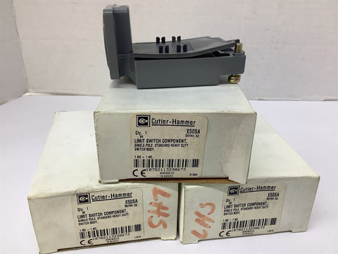 Cutler-Hammer E50SA Limit Switch Component 1 Pole Lot Of 3 Return Policy Returns accepted within 30 days. Items sold as is cannot be returned, unless description is in error. Buyer pays return freight. Shipping Policy We ship almost all items with 1 business day of cleared payment. We ship USPS and UPS. We can ship on your account. If you will be shipping freight, please be sure to provide all delivery contact information including a phone number. We will need to know if you have a fork lift or dock.