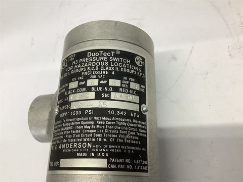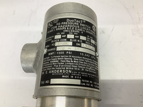 DuoTect A2SC H3 Pressure Switch 5 Amp Used--Good Visual Condition--10/21LBCC 126048---SS234--T-15-5-3---4.00