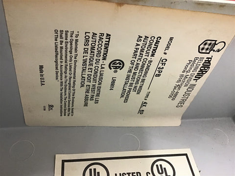 Robroy CF3PB Control Station Return Policy Returns accepted within 30 days. Items sold as is cannot be returned, unless description is in error. Buyer pays return freight. Shipping Policy We ship almost all items with 1 business day of cleared payment. We ship USPS and UPS. We can ship on your account. If you will be shipping freight, please be sure to provide all delivery contact information including a phone number. We will need to know if you have a fork lift or dock.