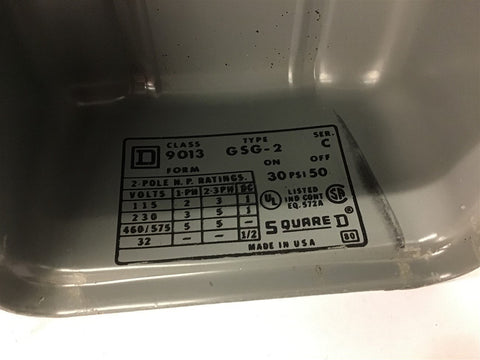 Square D 9013 GSC-2 Pressure Switch 30-50 PSI